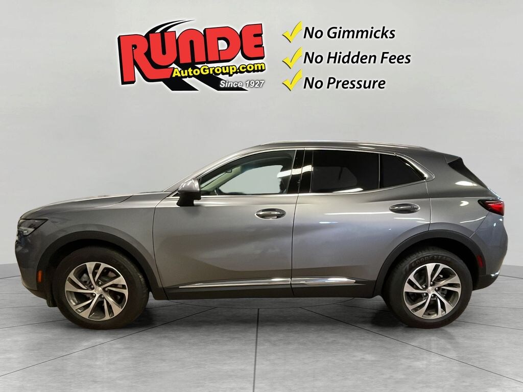 Find exceptional value with this pre-owned 2021 Buick Envision Essence, now available in East Dubuque, IL. This stylish compact SUV pairs an efficient 4-cylinder 2.0L gasoline engine with smooth front-wheel drive for confident daily commutes and highway cruising. Enjoy premium comfort with leather seats and a refined interior that makes every trip feel special. Safety and convenience come standard: Lane Departure Warning helps keep you centered on the road, while rear parking sensors make tight spaces effortless. Stay connected with Apple CarPlay for seamless smartphone integration, navigation, and hands-free calling. This Buick Envision also carries an AutoCheck Clean Report, giving you added peace of mind about its history and condition. Selling at the best price in the area, this Buick Envision Essence offers premium features and reliability without the premium cost. Ideal for families, professionals, or anyone seeking a comfortable, feature-rich SUV that's easy to drive and maintain. Located in East Dubuque, IL, this vehicle is ready for a test drive â" see for yourself why it's the smart choice for value-conscious buyers. Contact us to schedule a showing or request a vehicle history report. Don't miss the opportunity to own a well-equipped 2021 Buick Envision Essence at the best local price.