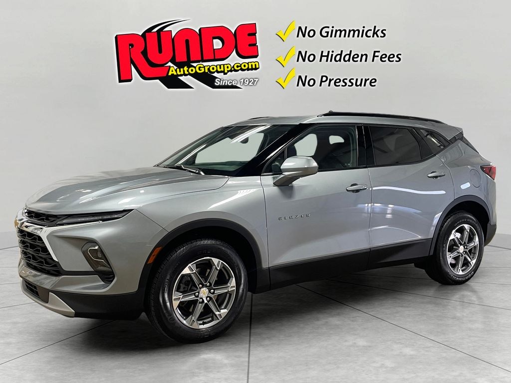 This mid-size suv stays safely in its lane with Lane Keep Assist. The vehicle keeps you comfortable with Auto Climate. It comes equipped with Android Auto for seamless smartphone integration on the road. This 2023 Chevrolet Blazer 's AutoCheck: 1 owner, assurance of single-owner history for peace of mind. Apple CarPlay: Seamless smartphone integration for this mid-size suv - stay connected and entertained on the go! See what's behind you with the back up camera on this Chevrolet Blazer. This model features a hands-free Bluetooth phone system. Never get into a cold vehicle again with the remote start feature on this unit. This Chevrolet Blazer has auto-adjust speed for safe following. The Chevrolet Blazer has a clean AutoCheck report, ensuring its impeccable vehicle history. Conquer any rainy, snowy, or icy road conditions this winter with the all wheel drive system on the Chevrolet Blazer. This Chevrolet Blazer projects refinement with a racy metallic gray exterior.