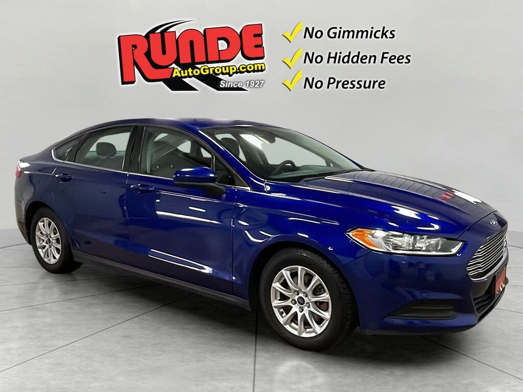 2016 Ford Fusion S â" reliable performance and efficient driving, now available in East Dubuque, IL. Powered by a fuel-efficient 2.5L 4-cylinder gasoline engine and front-wheel drive, this Ford Fusion balances responsive handling with impressive economy for daily commuting or longer trips. The streamlined exterior and comfortable interior create a practical midsize sedan that suits families, students, and professionals. This Ford Fusion S is equipped with Remote Start for easy temperature control on cold mornings, a Back-Up Camera for safer, more confident parking, and Hands-Free Bluetooth connectivity for convenient and distraction-free calling and audio streaming. Thoughtful interior features and straightforward controls make every drive comfortable and stress-free, while durable materials and build quality provide lasting value. Competitively priced, this 2016 Ford Fusion S offers the best price in the area, making it an exceptional value for budget-conscious shoppers seeking a dependable pre-owned vehicle. Located in East Dubuque, IL, itâs ready for test drives and immediate purchase. With its combination of efficiency, practical features, and a budget-friendly price point, this Ford Fusion S is a smart choice for anyone seeking reliable transportation without compromise. Contact us to schedule a test drive or request a vehicle history report. Financing options may be available to qualified buyers. Visit East Dubuque to see this Ford Fusion S today.