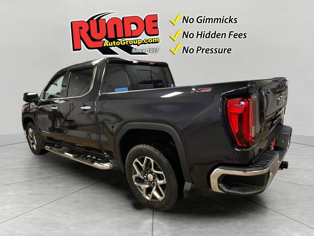 SLT Convenience Package: Ventilated Driver and Front Passenger Seats; Power Rake and Telescoping Steering Column; Premium Bose 7-Speaker Sound System; Floor-Mounted Center Console; Wireless Charging; Front Bucket Seats. X31 Off-Road and Protection Package: Spray-On Pickup Bedliner with GMC Logo; All-Weather Floor Liner. X31 Off-Road Package: 265/65R18SL AT BW Tires; 2-Speed Transfer Case; Hill Descent Control; Dual Exhaust System; Off-Road Suspension; Skid Plates; Heavy-Duty Air Filter; X31 Hard Badge. SLT Preferred Package: Heated 2nd Row Outboard Seats; Power Sliding Rear Window with Rear Defogger; Adaptive Cruise Control; Universal Home Remote. SLT Premium Plus Package: Chrome Wheel to Wheel Assist Steps; Spray-On Pickup Bedliner with GMC Logo. ProGrade Trailering System: In-Vehicle Trailering App; Integrated Trailer Brake Controller; Hitch View. Sierra Safety Plus Package: Rear Cross Traffic Braking; HD Surround Vision; Trailer Side Blind Zone Alert; Rear Pedestrian Detection; Ultrasonic Front and Rear Park Assist; Safety Alert Seat; Trailer Camera Provisions. Preferred Equipment Group 4SA: HD Rear Vision Camera; LED Cargo Area Lighting; Remote Vehicle Starter System; Electric Rear-Window Defogger; 5.3L EcoTec3 V8 Engine; Theft Deterrent System (unauthorized Entry); Chrome Header and Chrome Grille Insert Bars; 170 Amp Alternator; Auxiliary External Transmission Oil Cooler; Front Rain-Sensing Wipers; GMC Pro Safety; Trailering Package; 120-Volt Interior Power Outlet; 18 X 8.5 6-Spoke Machined Aluminum Wheels; 2 Charge/data USB Ports; Steering Wheel Audio Controls; 2 type-C Charge-Only Rear USB Ports; GMC Connected Access Capable; Color-Keyed Carpeting Floor Covering; OnStar and GMC Connected Services Capable; Power Front Passenger Windows with Express Up/down; Deep-Tinted Glass; 6-Speaker Audio System Feature; Power Rear Windows with Express Down; SiriusXM with 360L; Single Speed Transfer Case; Power Front Windows with Driver Express Up/down; Manual Tilt-Wheel and Telescoping Steering Column; Front Frame-Mounted Black Recovery Hooks; Keyless Open and Start; Wi-Fi Hotspot Capable; Perimeter Lighting; Push Button Start; Rear Wheelhouse Liners; Auto-Locking Rear Differential; Power Door Locks. Chrome Wheel to Wheel Assist Steps. Spray-On Pickup Bedliner with GMC Logo. Titanium Rush Metallic. All-Weather Floor Liner. 265/65R18SL AT BW Tires. **Equipment listed is based on original vehicle build and subject to change. Please confirm the accuracy of the included equipment by calling the dealer prior to purchase.**