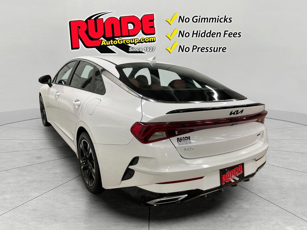 This Kia K5 offers Apple CarPlay for seamless connectivity. This mid-size car's Lane Departure Warning keeps you safe by alerting you when you drift from your lane. This 2023 Kia K5 utilizes collision avoidance to enhance safety by automatically detecting and evading potential accidents. This mid-size car has a clean AutoCheck report. See what's behind you with the back up camera on this vehicle. The leather seats in it are a must for buyers looking for comfort, durability, and style. Start the Kia K5 from inside with remote start. This unit offers Automatic Climate Control for personalized comfort. This unit is pure luxury with a heated steering wheel. It features a hands-free Bluetooth phone system. You'll never again be lost in a crowded city or a country region with the navigation system on it. The vehicle's AutoCheck: 1 owner, assurance of single-owner history for peace of mind. This 2023 Kia K5 comes equipped with Android Auto for seamless smartphone integration on the road.