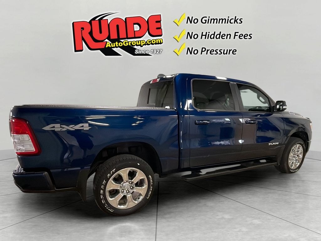 Quick Order Package 25Z Big Horn/Lone Star: Steering Wheel Mounted Audio Controls. Big Horn Level 2 Equipment Group: Uconnect 4 Radio with 8.4 Display; Rear Window Defroster; Integrated Center Stack Radio; ParkSense Front/rear Park Assist with Stop; Rear View Auto Dim Mirror; Power Adjustable Pedals; Rear Power Sliding Window; Rear Dome with On/off Switch Lamp; Glove Box Lamp; Power 4-Way Driver Lumbar Adjust; 115V Auxiliary Rear Power Outlet; Power 8-Way Driver Seat; 2 USB Full Function/charge Only Media Hub; Heated Front Seats; Heated Steering Wheel; 8.4 Touchscreen Display; Foam Bottle Insert (door Trim Panel); Class IV Receiver Hitch; Dampened Tailgate; Security Alarm; Power Heated Fold Away Mirrors; Big Horn Instrument Panel Badge; Remote Start System; SiriusXM Satellite Radio; 400W Inverter; Air Conditioning ATC with Dual Zone Control; 115V Auxiliary Power Outlet; Cluster 7.0 TFT Color Display; Universal Garage Door Opener; Single Disc Remote CD Player; Sun Visors with Illuminated Vanity Mirrors. North Edition: Exterior Mirrors with Supplemental Signals; Power Heated Fold-Away Mirrors; Body Color Door Handles; Exterior Mirrors Courtesy Lamps; 275/55R20 OWL All-Terrain Tires; Engine Block Heater; Front Extra Heavy Duty Shock Absorbers; Rear Extra Heavy Duty Shock Absorbers; Auto Dim Exterior Driver Mirror; Exterior Mirrors with Memory; Full Size Spare Tire; Tow Hooks; Grille B/color Outline 1 Texture 2; 4x4 Decal; E-Locker Rear Axle; Power-Folding Mirrors; Body Color Front Bumper; Front and Rear Rubber Floor Mats; Body Color Rear Bumper with Step Pads; Hill Descent Control. 20 X 9 Aluminum Chrome Clad Wheels. E-Locker Rear Axle. Deluxe Cloth Bucket Seats. ParkSense Front/rear Park Assist with Stop. Single Disc Remote CD Player. Remote Start System. Rear Wheelhouse Liners. Front and Rear Rubber Floor Mats. Patriot Blue Pearlcoat. **Equipment listed is based on original vehicle build and subject to change. Please confirm the accuracy of the included equipment by calling the dealer prior to purchase.**